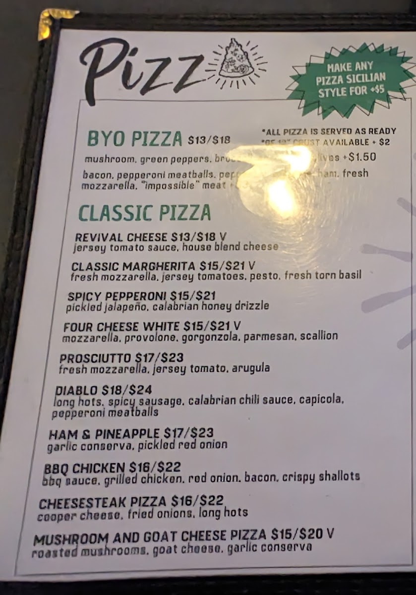 The bar offers a great selection of beers, wines, and innovative mocktails that elevate the dining experience. With attentive service noted by patrons, including speedy and friendly staff, Revival Pizza Pub promises not just a meal but a memorable outing.